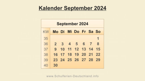 Auf dieser Seite sind alle wichtigen Informationen zum Kalender September 2024 zu finden. Der September 2024 beginnt am Sonntag, den 1. September 2024 und endet am Montag, den 30. September 2024. Der September Kalender 2024 umfasst insgesamt 30 Kalendertage. Zusätzlich sind auch die Kalenderwochen in dem Monatskalender für September sind zu finden. Der Kalender September 24 beinhaltet die Kalenderwochen von KW35 2024 bis KW40 2024. So können alle Wochentage September 2024 und Kalendertage September 2024 schnell gefunden werden. #september2024 #september24 #2024septemberIn vielen Ländern, einschließlich Deutschland, beginnt die Woche traditionell am Montag. Dies basiert auf der internationalen Norm ISO 8601, die Montag als ersten Tag der Woche festlegt. Diese Norm wird vor allem in europäischen Ländern und solchen, die von europäischer Kultur beeinflusst sind, befolgt. Es ist interessant, wie unterschiedlich die Woche in verschiedenen Kulturen und Systemen beginnt. In anderen Teilen der Welt, wie in den Vereinigten Staaten und Kanada, wird die Woche üblicherweise am Sonntag begonnen. Es ist nicht ungewöhnlich, dass der Wochenbeginn von Land zu Land variiert, und es spiegelt die Vielfalt der kulturellen und historischen Praktiken weltweit wider.September 2024 als Video: Kalender September 2024